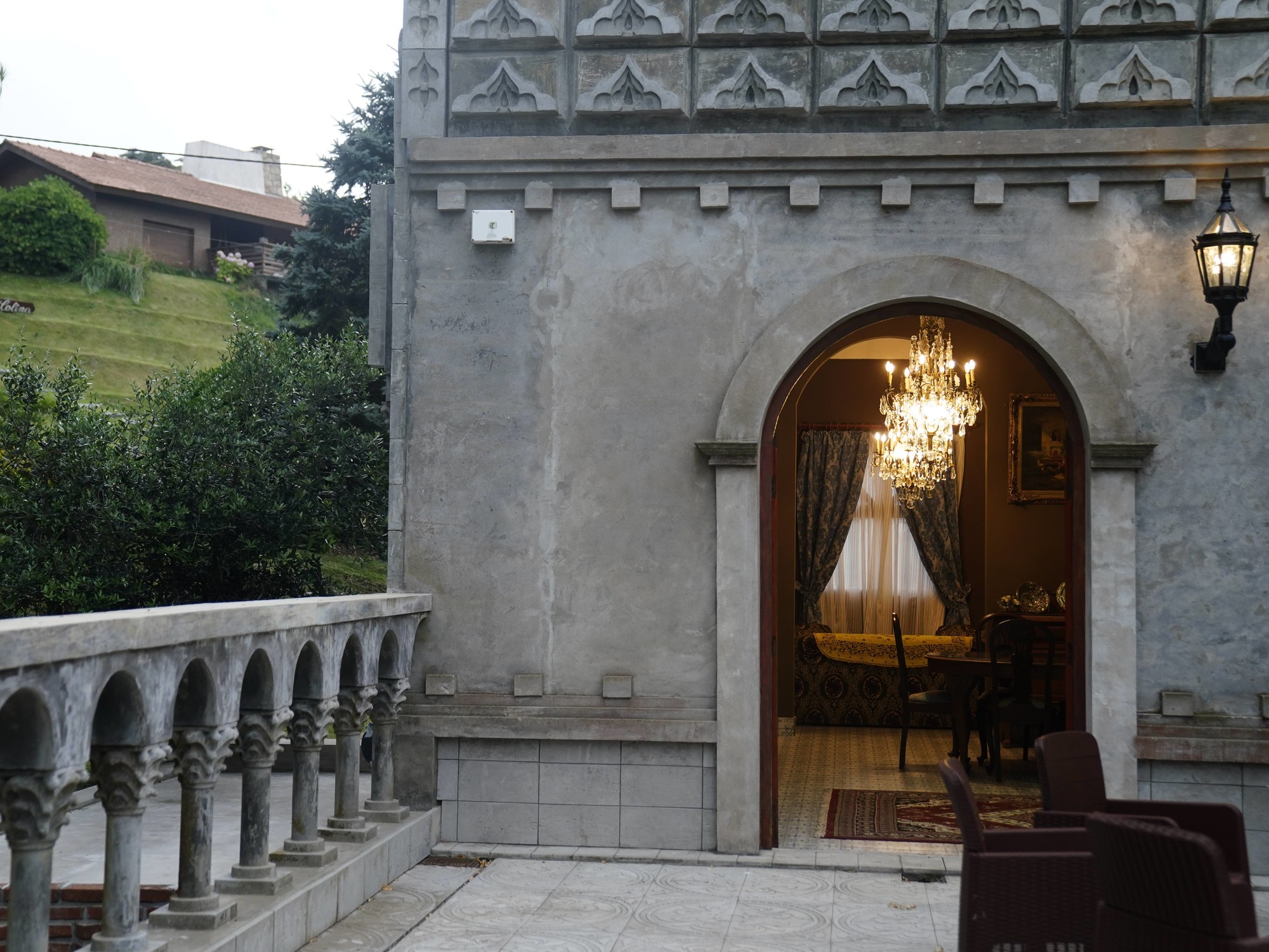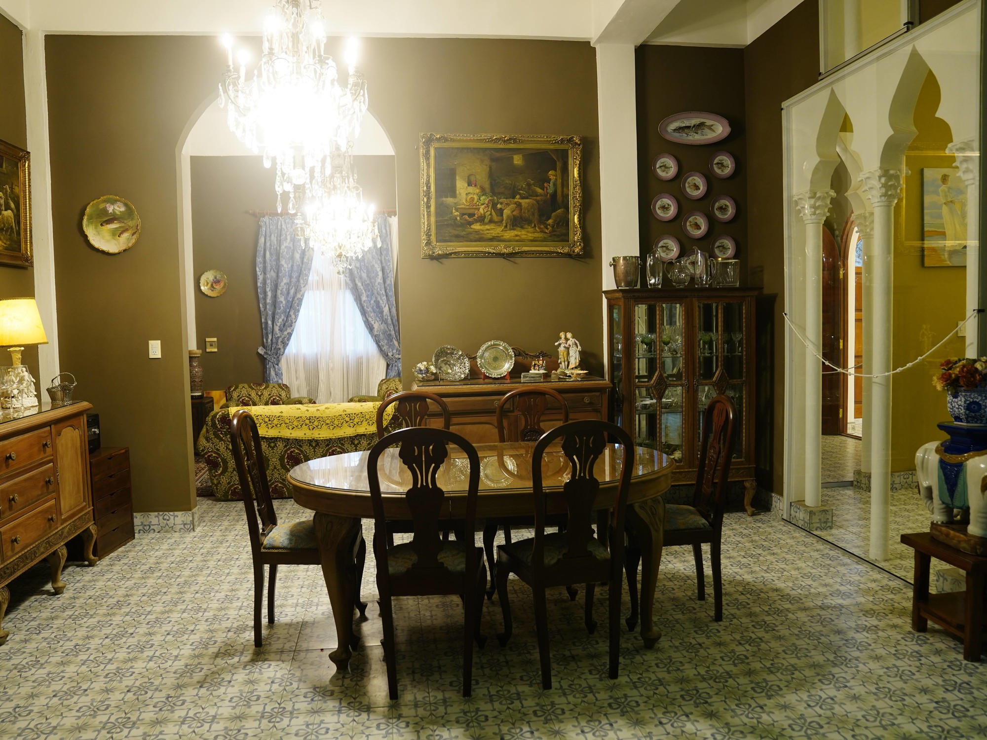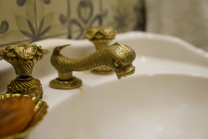 En los baños las canillas son patos de bronce y los muebles de los salones están repletos de vajilla de porcelana francesa e inglesa. En la sala principal hay arañas de cristal, los sillones están tapizados con pana italiana, mientras que de las paredes cuelgan enormes gobelinos de fines del siglo XVIII.