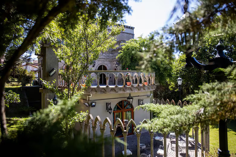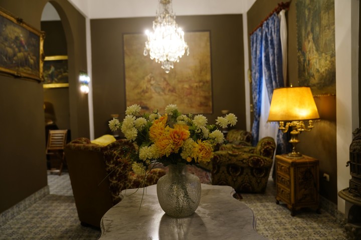 El Palacio está dividido en cuatro plantas con una disposición muy particular por sus múltiples ingresos, desniveles y terrazas. En la principal, se encuentra un amplio espacio de recepción, living y comedor. En otro de los niveles -que también funciona como subsuelo, si se toma como referencia la fachada- hay una bodega y sótano que conecta hacia el jardín con pérgola y fuente de agua. Más arriba, la pileta con terraza. En el último nivel, las fastuosas suites todas ambientadas con antigüedades restauradas por su dueño.